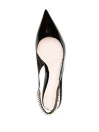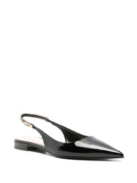 Signorina ballet flats Highlights - Black - Calf leather - Patent finish - Slip-on style - 15 mm - Low stacked heel - Gold-tone logo chain-link detail - Elasticated slingback strap - Pointed toe - Leather lining - Branded footbed Made in Italy Composition Outer: Patent Calf Leather 100% Sole: Calf Leather 100% Lining: Calf Leather 100% SIZE & FIT Measurement HEEL 0.78 in(2 cm)