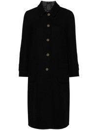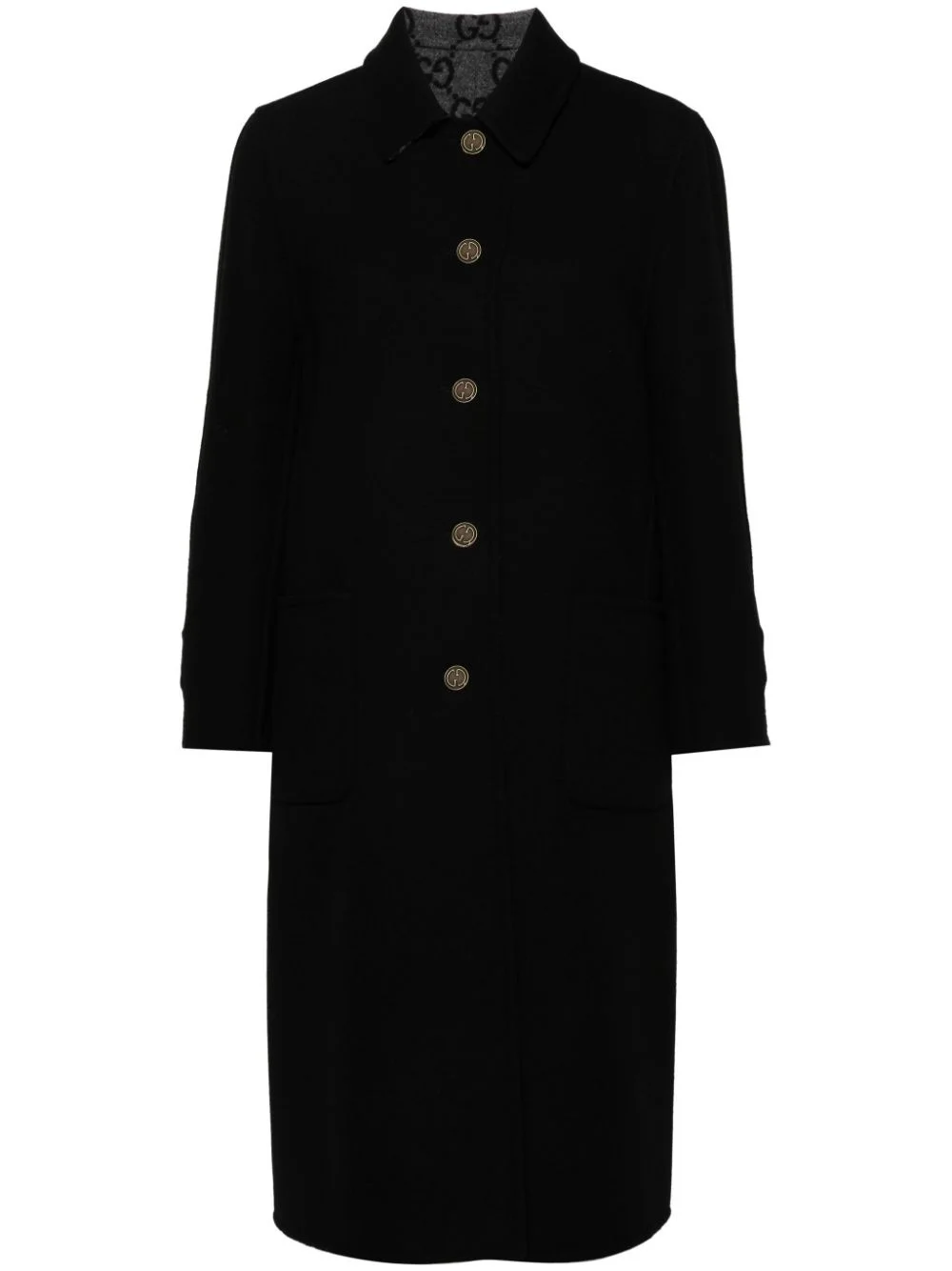 single-breasted tailored coat Smarten up this season with this stylish single-breasted coat from Gucci. Boasting a tailored cut and long sleeves, it updates a classic silhouette with a modern feel. Fresh as always. Highlights - Black - Wool-silk blend - Wool felt - Classic collar - Long sleeves - Two front patch pockets - Straight hem - Front button fastening Made in Italy Composition Wool 99%, Silk 1% SIZE & FIT Model measurements Height 5 ft 11 in(1.8 m) Bust/Chest 32.67 in(83 cm) Hips 36.22 in(92 cm) Waist 24.4 in(62 cm) Measurement LENGTH 42.51 in(108 cm) SLEEVE LENGTH 22.44 in(57 cm) FittingInformation Designed to be unstructured, offering a loose fit throughout Made from a midweight non-stretch fabric This piece fits true to size – take your usual size Washing instructions Dry Clean Only