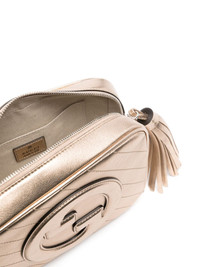 small Blondie shoulder bag Highlights - Gold-tone - Calf leather - Metallic finish - Tassel detail - Signature interlocking g logo - Logo patch to the front - Top zip fastening - Adjustable shoulder strap - Main compartment - Internal slip pocket - Internal logo patch - Canvas lining - Silver-tone hardware - This piece comes complete with a protective dust bag. Made in Italy Composition Outer: Calf Leather 100% SIZE & FIT Model measurements Height 5 ft 11 in(1.8 m) Bust/Chest 31.49 in(80 cm) Hips 35.82 in(91 cm) Waist 24.8 in(63 cm) Measurement DEPTH 3.14 in(8 cm) HEIGHT 5.9 in(15 cm) STRAP 51.57 in(131 cm) WIDTH 7.87 in(20 cm)