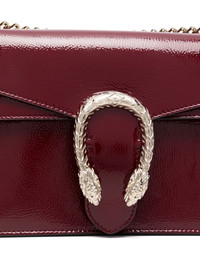 small Dionysus shoulder bag Highlights - Blood red - Leather - Patent finish - Foldover top with clasp fastening - Chain-link shoulder strap - Metallic snake detail - Partitioned compartment - Zip-fastening compartment - Internal flap pocket - Full lining - This piece comes complete with a protective dust bag. Made in Italy Composition Outer: Patent Leather 100% SIZE & FIT Model measurements Height 5 ft 11 in(1.8 m) Bust/Chest 32.67 in(83 cm) Hips 35.82 in(91 cm) Waist 25.98 in(66 cm) Measurement DEPTH 3.93 in(10 cm) HEIGHT 6.29 in(16 cm) WIDTH 10.82 in(27.5 cm) STRAP 22.04 in(56 cm)