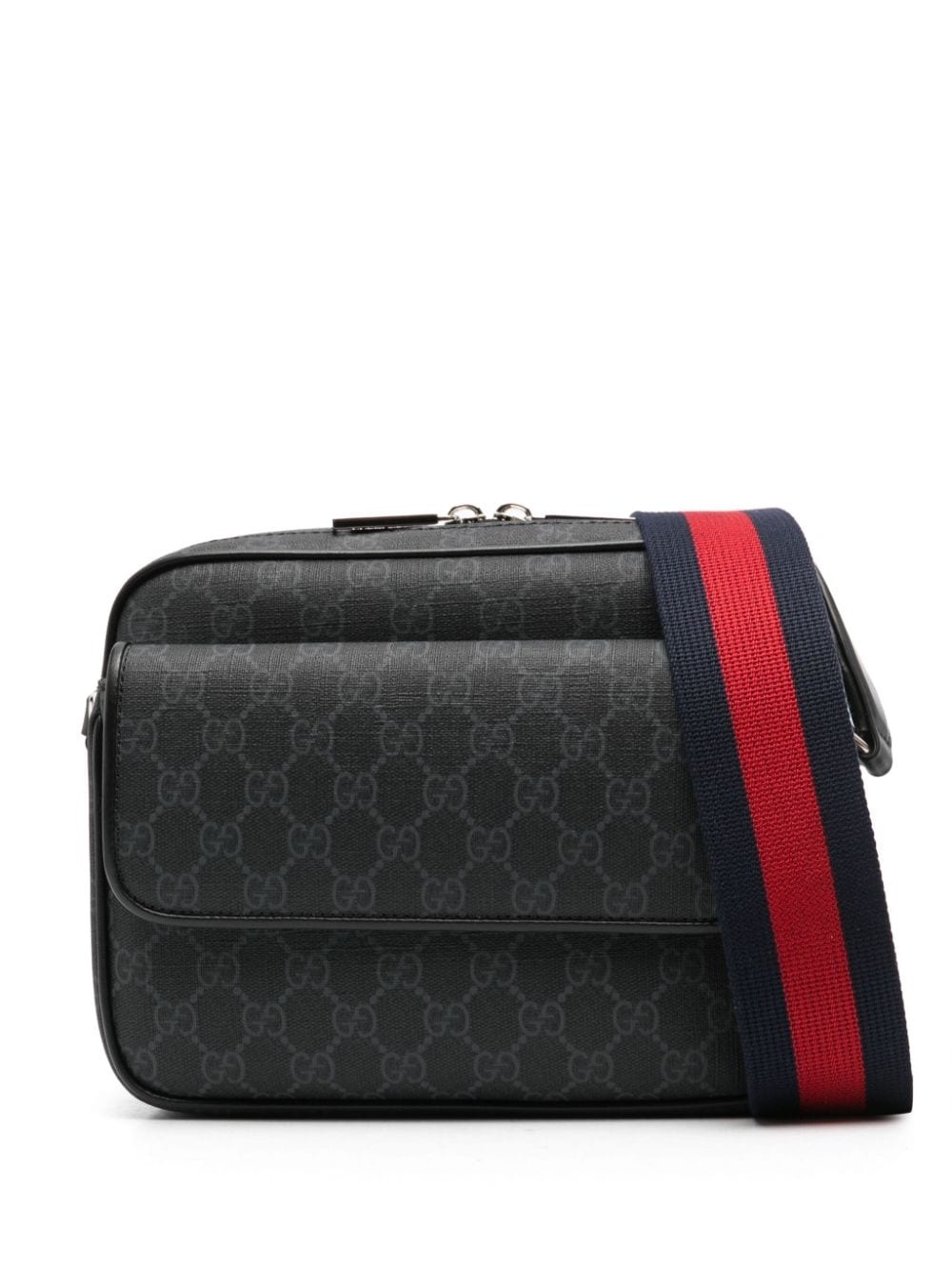 small GG cross body bag Highlights - Dark grey - Gg supreme canvas - Leather trim - Debossed logo to the side - Front flap pocket - Signature sylvie web adjustable detachable shoulder strap - Main compartment - Internal zip-fastening pocket - Debossed internal logo - Full lining - Logo-engraved silver-tone hardware - Two-way zip fastening - This piece comes complete with a protective dust bag. Made in Italy Composition Outer: Calf Leather 100% SIZE & FIT Model measurements Height 6 ft 2 in(1.88 m) Bust/Chest 35.43 in(90 cm) Hips 35.03 in(89 cm) Waist 27.95 in(71 cm) Measurement DEPTH 3.14 in(8 cm) HEIGHT 7.08 in(18 cm) STRAP 51.18 in(130 cm) WIDTH 9.44 in(24 cm)