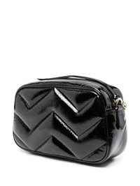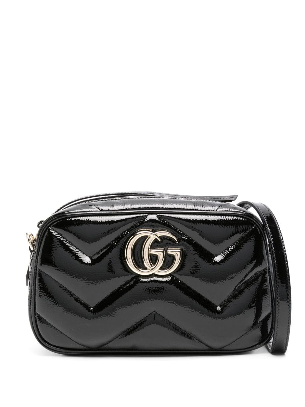 small GG Marmont shoulder bag Highlights - Black - Leather - Patent finish - Crinkled finish - Chevron quilting - Signature double g logo - Top zip fastening - Leather and chain-link shoulder strap - Main compartment - Debossed internal logo - Internal slip pocket - Full lining - This piece comes complete with a protective dust bag. Made in Italy Composition Brass 100%, Patent Leather 100% SIZE & FIT Model measurements Height 5 ft 9 in(1.76 m) Bust/Chest 31.88 in(81 cm) Hips 35.43 in(90 cm) Waist 24.8 in(63 cm) Measurement DEPTH 3.14 in(8 cm) HEIGHT 5.9 in(15 cm) STRAP 52.75 in(134 cm) WIDTH 9.84 in(25 cm)
