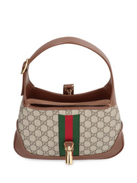 small Jackie 1961 shoulder bag Gucci reintroduces the Jackie shoulder bag, which first made its appearance in 1961. A reinvented icon, this bag is detailed with a gold-tone closure on the front and has two straps for alternative carrying options. This small-sized beige cotton-canvas iteration is decorated with the signature GG monogram pattern. Highlights - Beige/brown - Cotton-canvas/leather - Signature sylvie web detail - Monogram pattern - Contrasting trim - Gold-tone hardware - Adjustable shoulder strap - Adjustable detachable shoulder strap - Clasp fastening - Main compartment - Internal zip-fastening pocket - Internal slip pocket - This piece comes complete with a protective dust bag. Made in Italy Composition Outer: Calf Leather 100%, Polyurethane 60%, Polyester 40% SIZE & FIT Measurement DEPTH 1.8 in(4.5 cm) HANDLE 7 in(17.7 cm) HEIGHT 7.5 in(19 cm) STRAP 41.33 in(105 cm) WIDTH 11 in(27.9 cm)