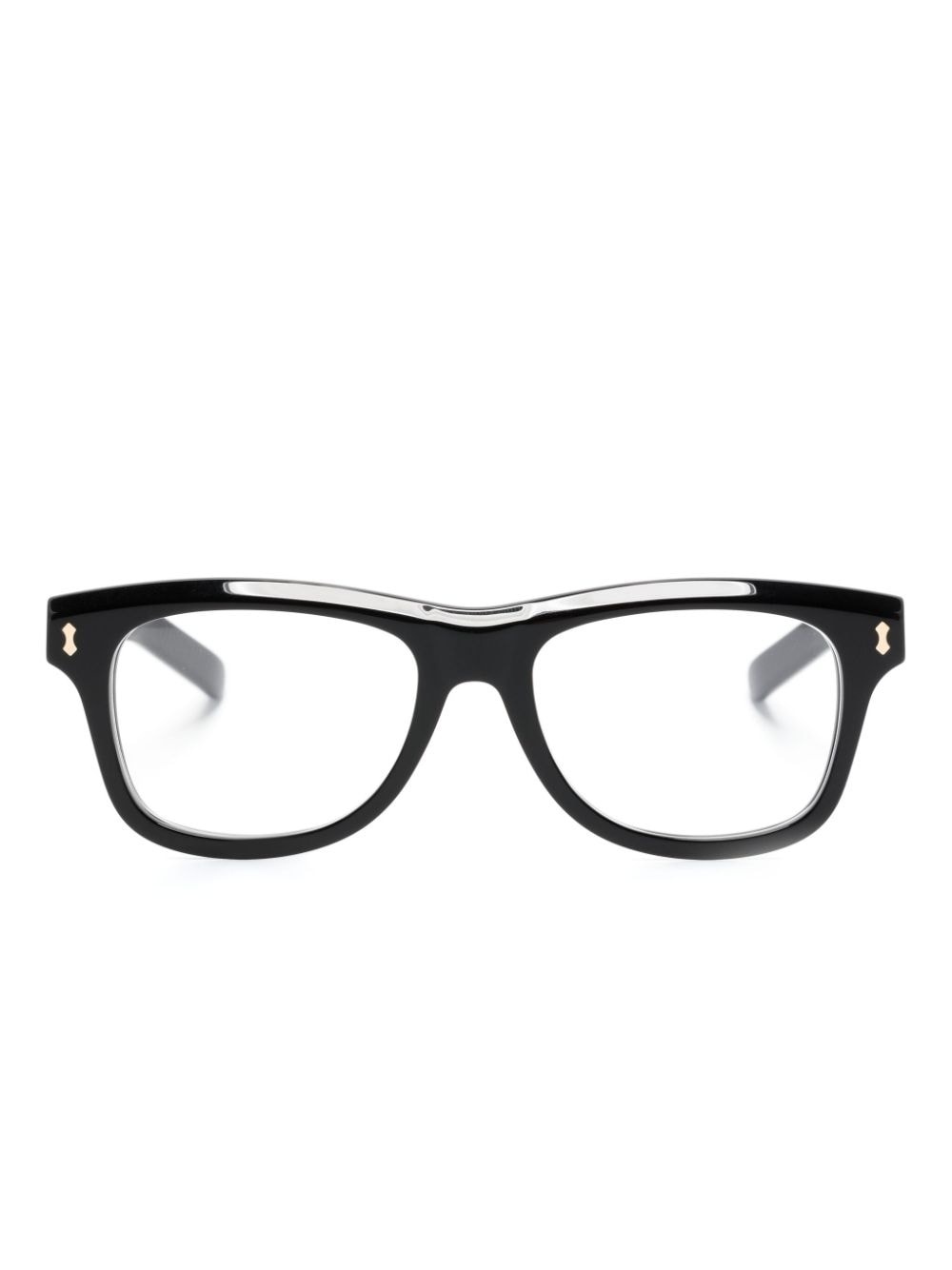 square-frame glasses Highlights - Black - Acetate - Square frame - Clear lenses - Logo-debossed arm - Straight arms with curved tips - All glasses from farfetch are sold as non-prescription frames. - These glasses come with a protective case. Made in Italy Composition Acetate 100% SIZE & FIT Measurement Arm Length 5.7 in(14.5 cm) Bridge Width 0.7 in(1.8 cm) Lens Diameter 2.04 in(5.2 cm) Total Width 5.51 in(14 cm)