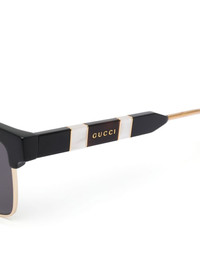square-frame sunglasses Gucci pays homage to their rich Italian heritage through iconic elements from the brand’s archives. The creative director explores new, modern paths to achieve this goal. Case in point: these black acetate square-frame sunglasses. Featuring dark tinted lenses, straight arms with angled tips, gold-tone hardware, a brand logo on external arm and a striped design at the arms. Please note: this item is unisex and comes with a protective case. Made in Italy Composition Acetate 100% SIZE & FIT Measurement Arm Length 5.7 in(14.5 cm) Total Width 5.86 in(14.9 cm) Bridge Width 0.62 in(1.6 cm) Lens Diameter 2.2 in(5.6 cm)