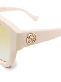 square-frame tinted sunglasses Merging timeless heritage with a sharp contemporary edge, these Gucci Eyewear sunglasses are defined by their structural shape. A bold design, they're finished with signature branding that lends a nod to the house's rich history. Made in Italy Composition Acetate 100% SIZE & FIT Measurement Arm Length 5.51 in(14 cm) Bridge Width 0.78 in(2 cm) Lens Diameter 2.2 in(5.6 cm) Total Width 5.98 in(15.2 cm)