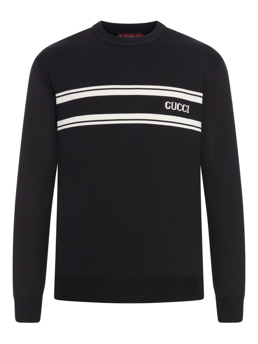 stripe-logo sweater Highlights - Black - Horizontal stripes - Logo embroidery - Crew neck - Long sleeves - Ribbed trims Made in Italy Composition Cotton 100%, Silk 100% Washing instructions Read Manufacturer Guidelines