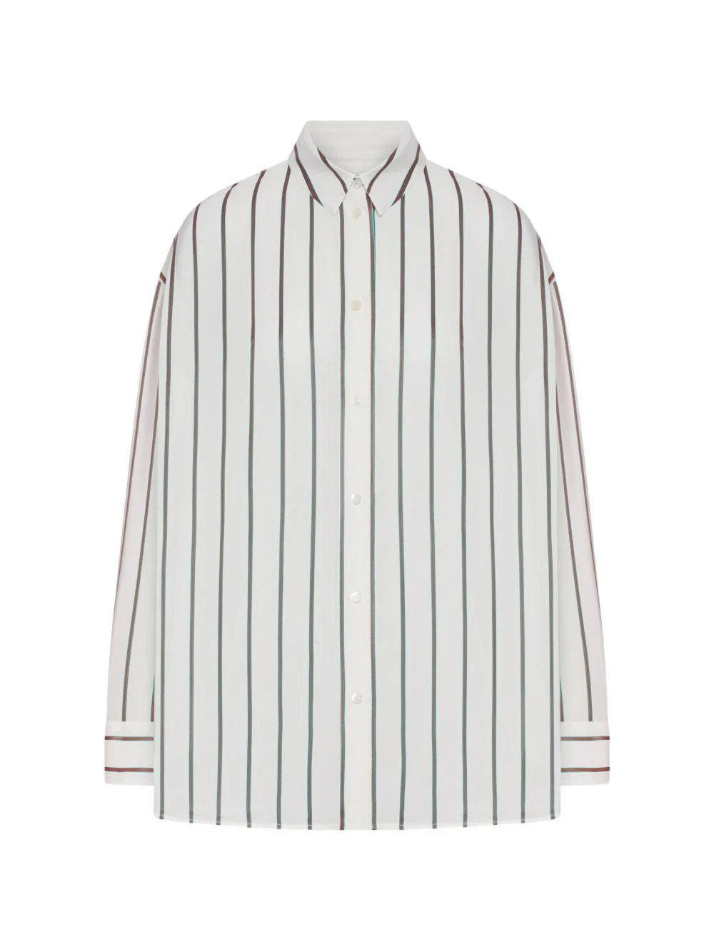 striped oversize shirt Highlights - White - Striped - Classic collar - Button fastening - Long sleeves - Buttoned cuffs Made in Italy Composition Silk 92%, Polyester 8% Washing instructions Read Manufacturer Guidelines
