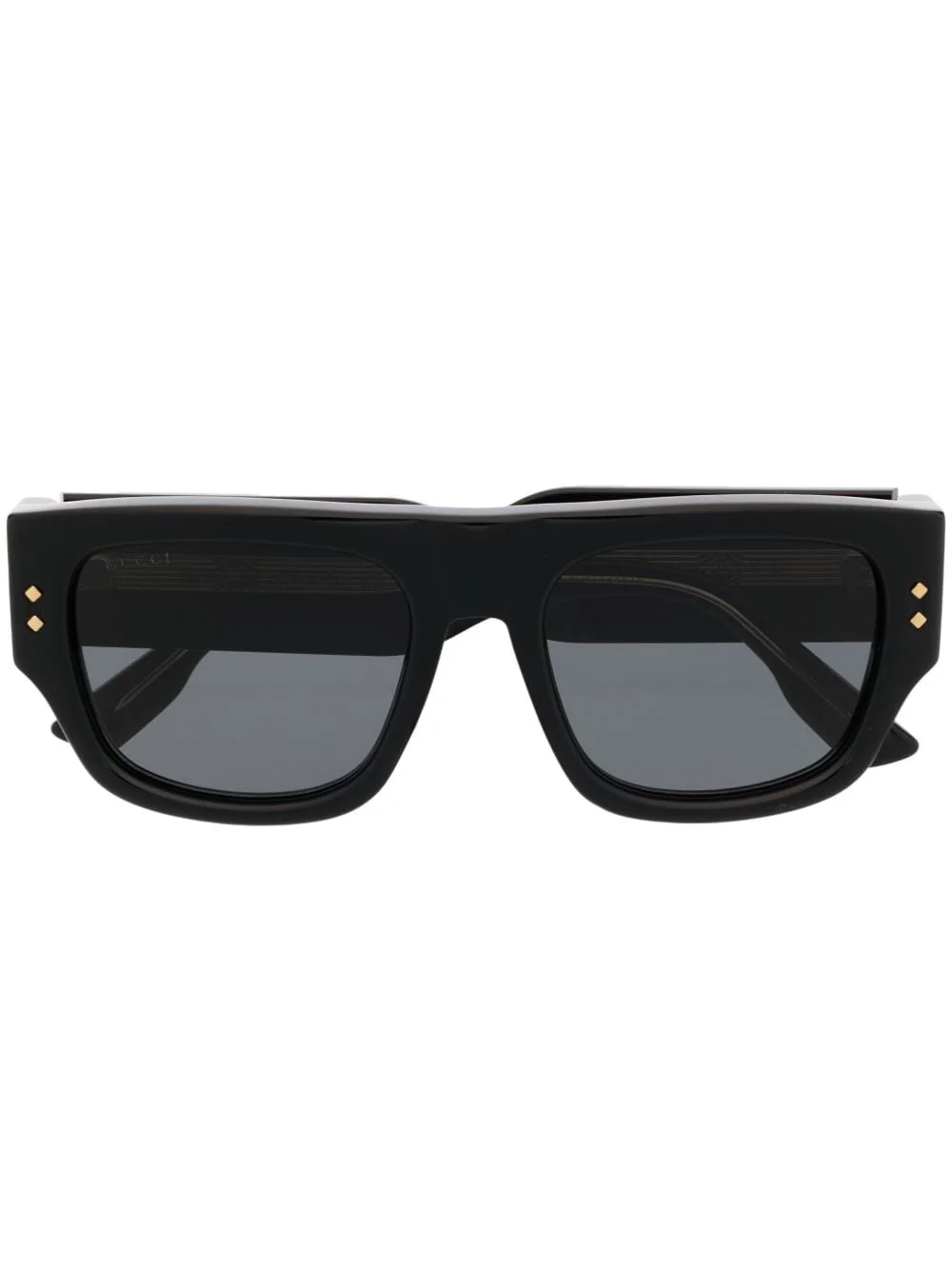 stud square-frame sunglasses black/gold-tone acetate lens decal grey tinted lenses square frame straight arms logo-engraved arm gold-tone stud detailing These glasses come with a protective case. Made in Italy Composition Acetate 100% SIZE & FIT Measurement Arm Length 5.7 in(14.5 cm) Bridge Width 0.78 in(2 cm) Lens Diameter 2.12 in(5.4 cm) Total Width 5.9 in(15 cm)
