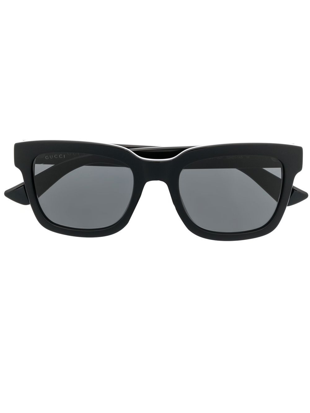tinted square-frame sunglasses black tinted lenses square frame raised bridge straight arms curved tips These glasses come with a protective case. Made in Italy Composition Acetate 100% SIZE & FIT Measurement Arm Length 5.7 in(14.5 cm) Bridge Width 0.82 in(2.1 cm) Lens Diameter 2.04 in(5.2 cm) Total Width 5.55 in(14.1 cm)