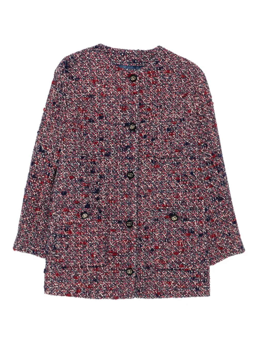 tweed button-fastening jacket Highlights - Blue - Button closure - Long sleeves - Gold-tone buttons - Patch pockets Made in Italy Composition Wool 86%, Polyamide 11%, Polyester 3% SIZE & FIT Model measurements Height 5 ft 9 in(1.75 m) Bust/Chest 34.64 in(88 cm) Hips 36.61 in(93 cm) Waist 26.37 in(67 cm)