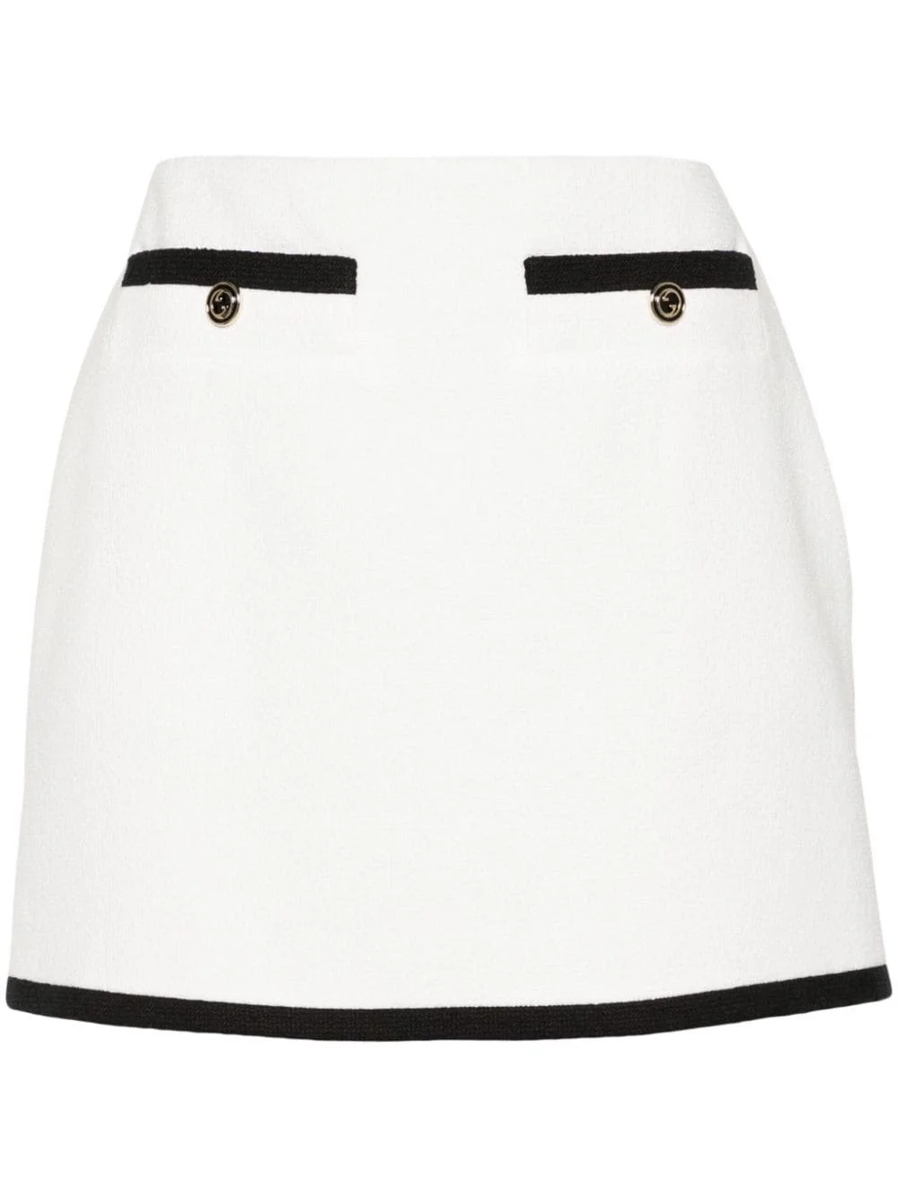tweed mini skirt Highlights - White - Cotton blend - Tweed - Faux pocket detail - Contrasting border - Full lining - Thigh-length - Straight hem - Concealed side zip fastening Made in Italy Composition Outer: Cotton 91%, Polyamide 9% Lining: Viscose 100%, Cupro 100% SIZE & FIT Model measurements Height 5 ft 11 in(1.8 m) Bust/Chest 32.67 in(83 cm) Hips 35.82 in(91 cm) Waist 25.98 in(66 cm) FittingInformation This mini-length skirt is intended to be worn just below the waist Made from a midweight non-stretch fabric This piece fits true to size – take your usual size