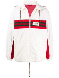 Web stripe jacket Highlights - White - White/multicolour - Logo patch at the chest - Drawstring hood - Front zip fastening - Long sleeves - Elasticated hem - Signature web detailing Made in Italy Composition Outer: Cotton 100%, Acrylic 100%, Polyamide 100%, Polyurethane 100% Lining: Polyamide 100% SIZE & FIT Model measurements Height 6 ft 1 in(1.85 m) Bust/Chest 37.79 in(96 cm) Hips 37.4 in(95 cm) Waist 30.7 in(78 cm) FittingInformation This piece fits true to size. We recommend you get your regular size Cut for a loose fit Made with a mid-weight non-stretch fabric Washing instructions Machine Wash