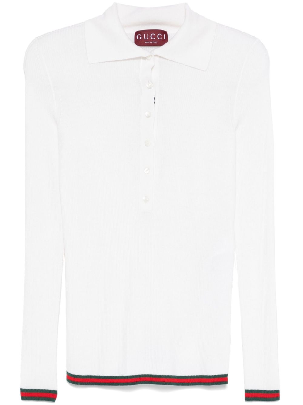 Web-stripe polo top Highlights - White - Short front button fastening - Ribbed cuffs and hem Made in Italy Composition Cashmere 70%, Silk 30% SIZE & FIT Model measurements Height 5 ft 10 in(1.77 m) Bust/Chest 34.64 in(88 cm) Hips 35.43 in(90 cm) Waist 24.8 in(63 cm) FittingInformation Designed for a slim fit that sits just away from the body offering a close yet comfortable fit Made with a midweight knit, this piece offers some stretch