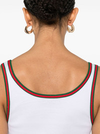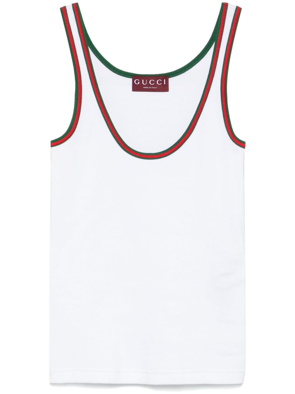 Web-Stripe ribbed tank top Highlights - White - Embroidered logo to the rear - Scoop neck - Straight hem Made in Italy Composition Polyester 100%, Cotton 98%, Elastane 2% SIZE & FIT Model measurements Height 5 ft 10 in(1.77 m) Bust/Chest 31.88 in(81 cm) Hips 36.22 in(92 cm) Waist 24.01 in(61 cm) Measurement LENGTH 25.19 in(64 cm) WAIST 27.55 in(70 cm) BUST 29.13 in(74 cm) FittingInformation Designed for a close fit throughout Made from a midweight stretch fabric, this piece offers elasticity and flexibility when worn