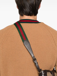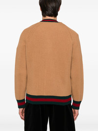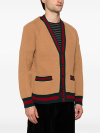 Web stripe-trim wool cardigan Highlights - Camel brown/multicolour - Wool - Ribbed knit - Signature web-stripe trim - V-neck - Long raglan sleeves - Two front welt pockets - Straight hem - Front button fastening Made in Italy Composition Wool 100% SIZE & FIT Model measurements Height 6 ft 2 in(1.87 m) Bust/Chest 37.79 in(96 cm) Hips 37.79 in(96 cm) Waist 30.31 in(77 cm) FittingInformation Designed for a relaxed fit, this piece allows for comfort and movement when worn The ribbed hem offers a close, comfortable fit Made with a midweight knit, this piece offers some stretch This piece fits true to size – take your usual size Washing instructions Dry Clean Only