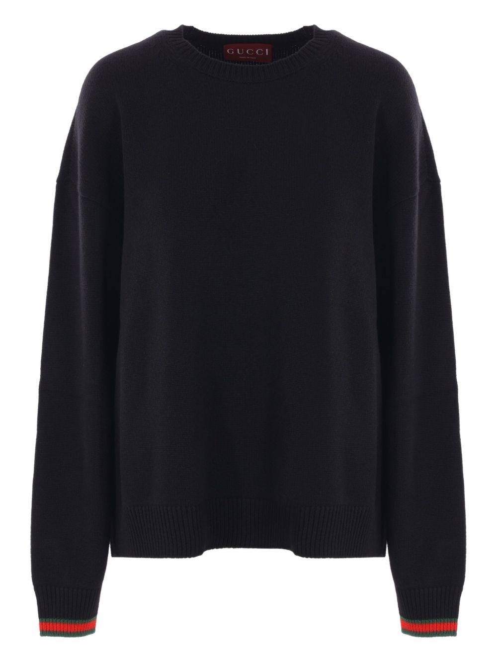 Web Stripe-trimmed sweater Highlights - Black - Crew neck - Long sleeves - Ribbed edges - Web stripe trim - Straight hem Made in Italy Composition Wool 70%, Cashmere 30% SIZE & FIT FittingInformation Designed to be unstructured, offering a loose fit throughout Made with a midweight knit, this piece offers some stretch