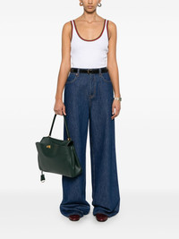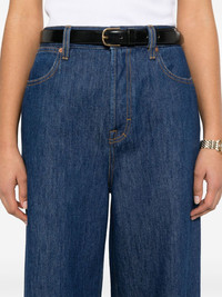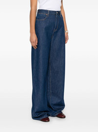 wide-leg jeans Highlights - Indigo blue - Button fly fastening - Classic five pockets - Belt loops - Logo patch to the rear Made in Italy Composition Outer: Cotton 100%, Calf Leather 100% Lining: Polyester 65%, Cotton 35% SIZE & FIT Model measurements Height 5 ft 10 in(1.77 m) Bust/Chest 31.88 in(81 cm) Hips 36.22 in(92 cm) Waist 24.01 in(61 cm) Measurement FRONT RISE 12.99 in(33 cm) INSIDE LEG 34.25 in(87 cm) HIPS 37 in(94 cm) WAIST 28.34 in(72 cm) FittingInformation Designed with a wide leg cut, these jeans allow for a close fit at the waist and offer a loose and roomy fit over the leg Sturdy and hard-wearing, this denim piece offers no stretch