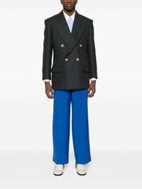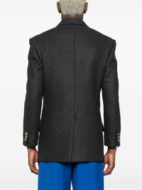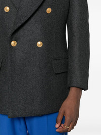 wool-cashmere double-breasted jacket Highlights - Dark grey - Wool-cashmere blend - Felted finish - Melange effect - Logo-engraved buttons - Peak lapels - Long sleeves - Buttoned cuffs - American rear vent - Chest welt pocket - Two front flap pockets - Cotton lining - Double-breasted button fastening Made in Italy Composition Outer: Wool 85%, Cashmere 15% Lining: Viscose 100%, Cupro 100%, Cotton 100% SIZE & FIT Model measurements Height 6 ft 0 in(1.84 m) Bust/Chest 34.64 in(88 cm) Hips 35.03 in(89 cm) Waist 27.95 in(71 cm) FittingInformation Designed for a relaxed fit, this piece allows for comfort and movement when worn The vented hem offers movement at the rear Made from a midweight non-stretch fabric This piece fits true to size – take your usual size Measurement CHEST 43.3 in(110 cm) SLEEVE LENGTH 24.8 in(63 cm) LENGTH 31.88 in(81 cm) WAIST 40.94 in(104 cm) Washing instructions Dry Clean Only