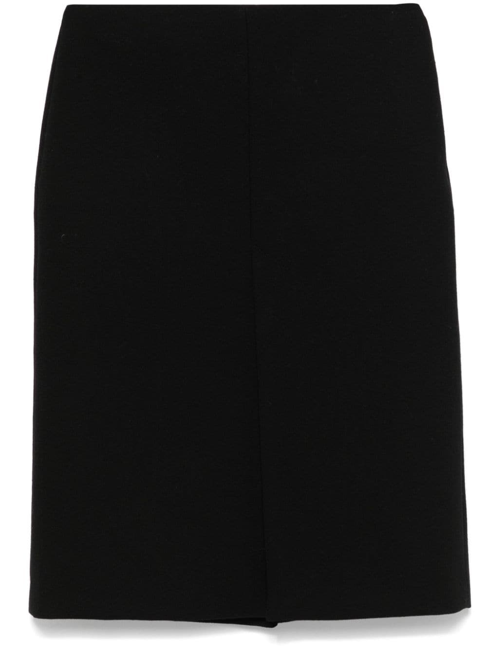 wool crepe midi skirt Highlights - Black - Wool - Wool crepe - Concealed side hook and zip fastening - Front slit - Embroidered logo to the rear - Two rear jetted pockets - Rear slit - Full lining - Straight hem - Mid-length Made in Italy Composition Outer: Wool 100%, Polyester 100%, Polyurethane 100%, Cotton 50%, Viscose 50% Lining: Acetate 75%, Silk 25% SIZE & FIT Model measurements Height 5 ft 10 in(1.77 m) Bust/Chest 33.07 in(84 cm) Hips 37 in(94 cm) Waist 24.8 in(63 cm) FittingInformation This midi-length skirt is intended to be worn just below the waist The vented hem offers movement at the rear Made from a midweight non-stretch fabric