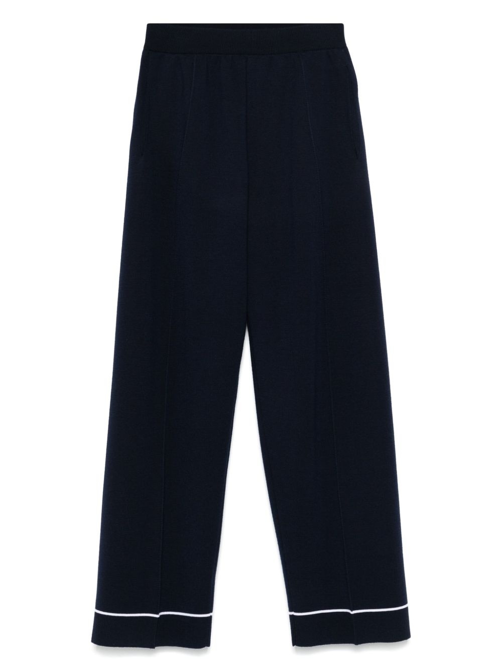wool trousers Highlights - Navy blue - Elasticated waistband - Two side inset pockets - Vertical seamed Made in Italy Composition Wool 100% SIZE & FIT Model measurements Height 5 ft 9 in(1.75 m) Bust/Chest 31.88 in(81 cm) Hips 34.64 in(88 cm) Waist 24.01 in(61 cm) FittingInformation Designed for a straight-leg fit, these trousers allow for a close fit at the waist and an unrestricted, comfortable fit over the leg The elasticated waist allows for a comfortable fit Made with a midweight knit, this piece offers some stretch