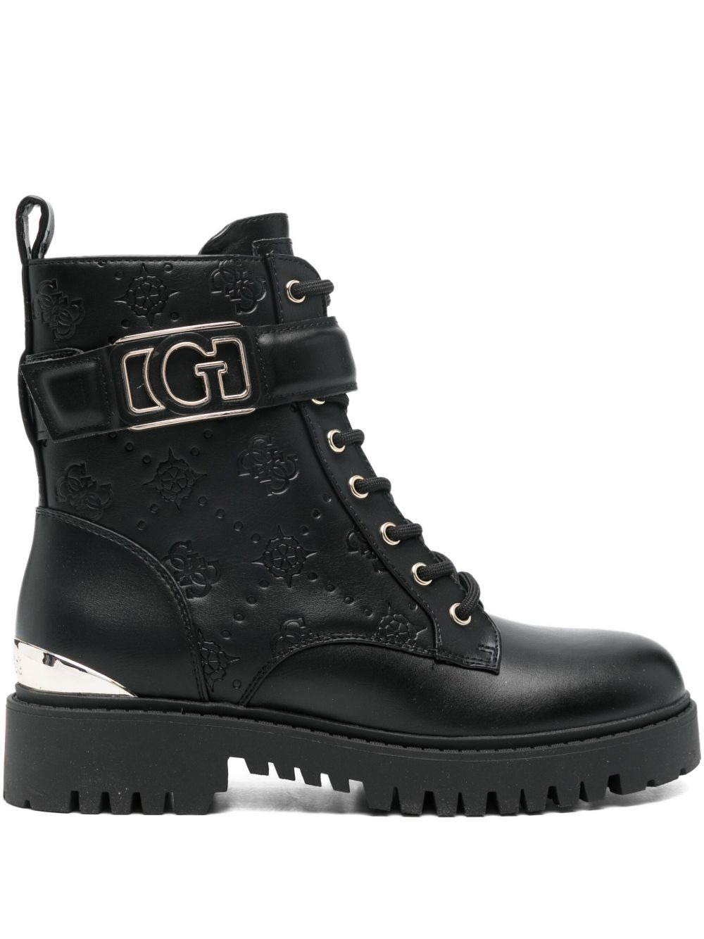 40mm Oranda 4G Peony logo-debossed combat boots Highlights - Black - Leather - Debossed logo pattern - Buckle fastening strap - Lace-up fastening Imported Composition Lining: Polyurethane 100%, Fabric 100% Sole: Rubber 100% Outer: Polyurethane 100%