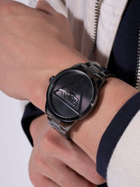 Badge 44mm Highlights - 44mm - Black - Stainless steel - Index hands - Round face - Mineral glass - Centre-dent crown - Adjustable link bracelet - Folding clasp Imported Composition Mineral Glass 100%, stainless steel 100% SIZE & FIT Measurement CIRCUMFERENCE 1.73 in(4.4 cm) WIDTH 0.86 in(2.2 cm)