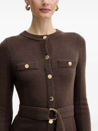 belted mini dress Highlights - Dark brown - Crew neck - Front button fastening - Two front pockets - Belt - Buckle detail Imported Composition Acrylic 30%, Cashmere 30%, Polyamide 25%, Viscose 15% Washing instructions Read Manufacturer Guidelines