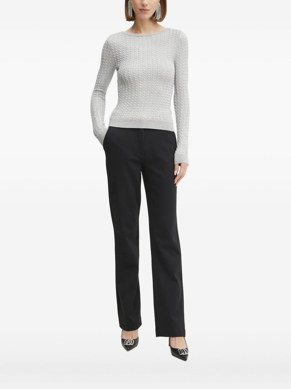 cable-knit sweater Highlights - Grey - Cable knit - Long sleeves - Round neck Imported Composition Viscose 65%, Metallic Fibre 16%, Polyester 12%, Polyamide 7% Washing instructions Read Manufacturer Guidelines