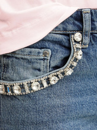 crystal-embellished five-pocket jeans Highlights - Light blue - Crystal embellishment - Straight legs - Button fly Imported Composition Cotton 99%, Elastane 1% Washing instructions Read Manufacturer Guidelines