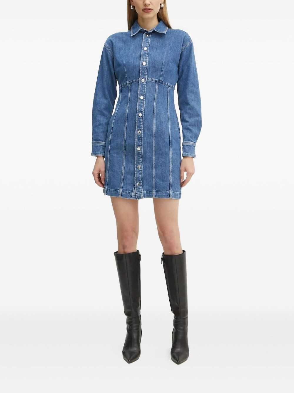 denim button-down shirt mini dress