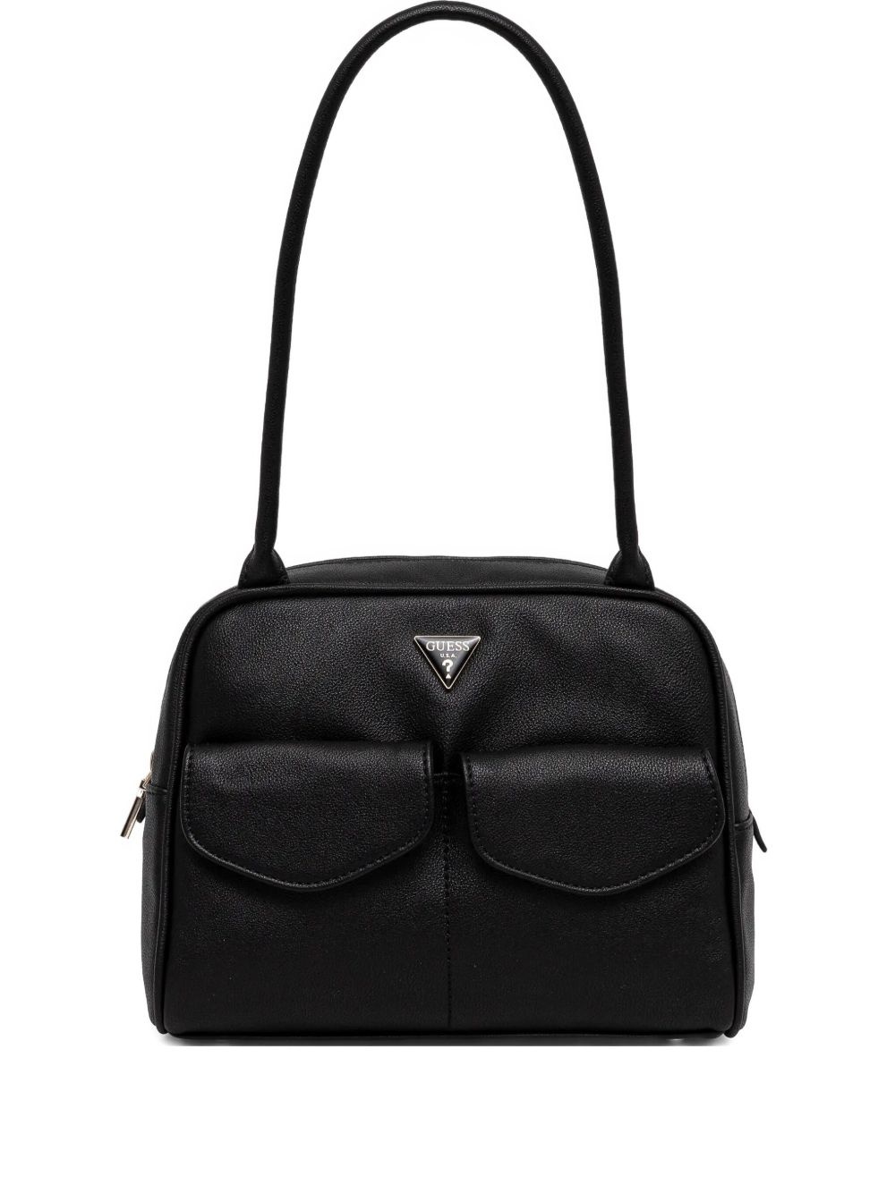 dual-pocket faux-leather shoulder bag Highlights - Black - Dual front pockets - Top zip fastening - Two rolled shoulder straps - Logo plaque detail Imported Composition Outer: Polyurethane 100%, Polyester 100% SIZE & FIT Measurement DEPTH 3.93 in(10 cm) HEIGHT 7.87 in(20 cm) WIDTH 9.44 in(24 cm)