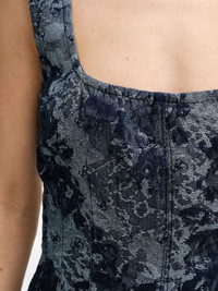 Eden jacquard denim mini dress Highlights - Dark blue - Floral print - Square neck - Sleeveless - Back zip fastening Imported Composition Cotton 52%, Polyester 24%, Viscose 20%, Polyamide 4% Washing instructions Read Manufacturer Guidelines