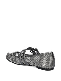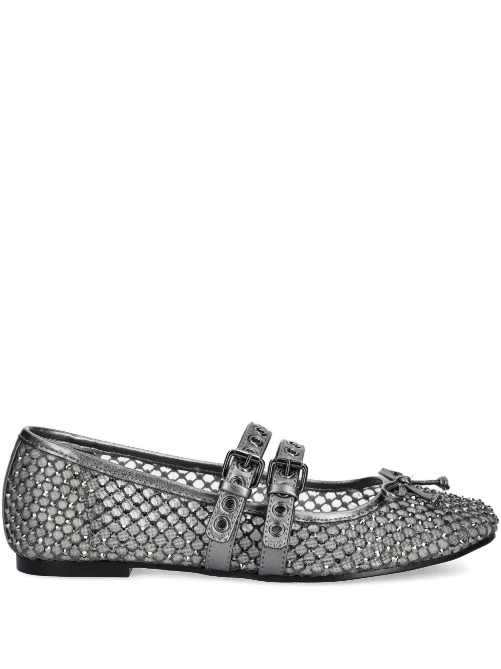 embellished buckle ballet flats Highlights - Silver - Mesh fabric - Crystal embellishment - Double buckle straps - Bow detail Imported Composition Lining: Fabric 100% Outer: Polyester 80%, Polyurethane 20% Sole: Synthetic Rubber 100%
