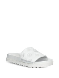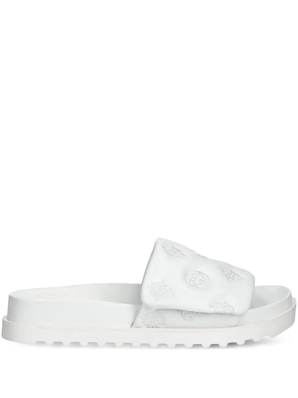 Fabio embroidered flat sandals Highlights - White - Embroidered logo design - Wide strap - Flat sole - Ridged outsole Imported Composition Sole: Thermoplastic Polyurethane (TPU) 100% Outer: Polyurethane 100% Lining: Fabric 100%