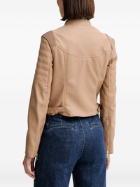 faux-leather biker jacket Highlights - Light brown - Zip fastening - Ribbed detail - Round neck - Gold-tone hardware - Buckle detail Imported Composition Lining: Polyester 95%, Elastane 5% Outer: Polyurethane 100% Washing instructions Hand Wash
