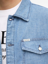 flap-pocket denim jacket Highlights - Light blue - Button fastening - Chest pockets - Collared neck - Long sleeves - Straight hem Imported Composition Cotton 91%, Linen/Flax 9%