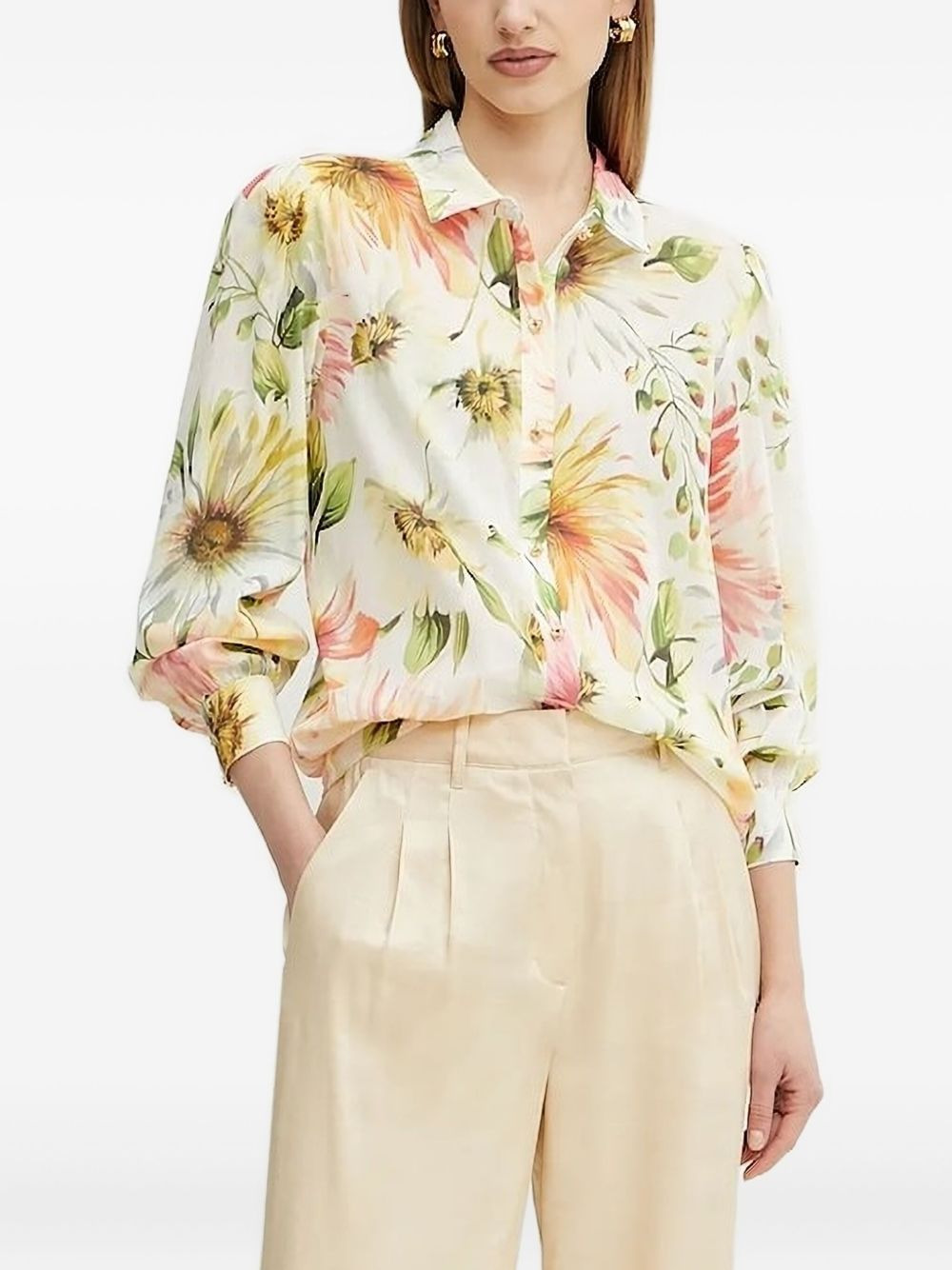floral-print shirt Highlights - Off-white - Cotton-blend - Floral print - Button fastening - Puff shoulders - Point collar Imported Composition Cotton 62%, Ramie 38% Washing instructions Read Manufacturer Guidelines