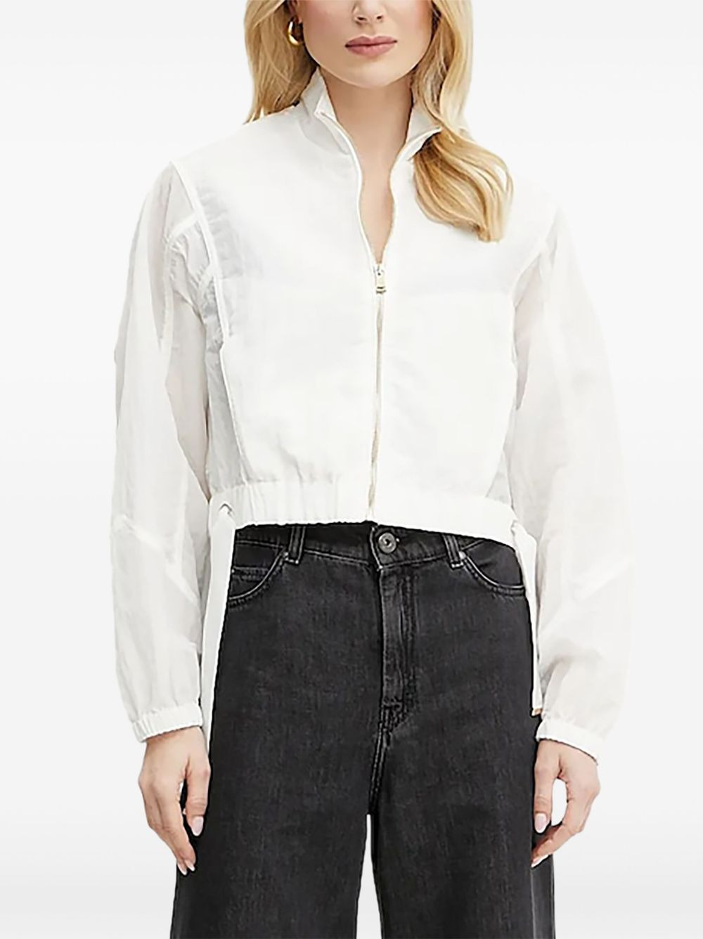 Florie zip-fastening drawstring jacket Highlights - White - Zip fastening - Drawstring hem - Long sleeves - Puffed sleeves - Cropped length Imported Composition Polyamide 100% Washing instructions Read Manufacturer Guidelines