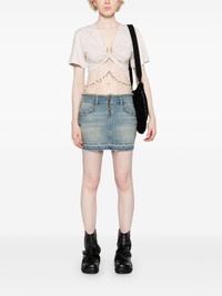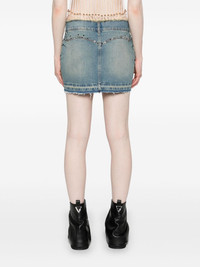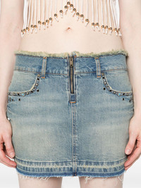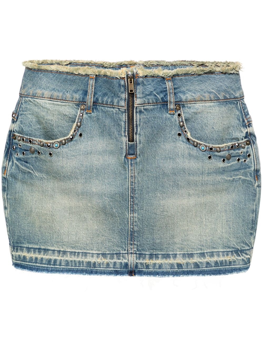 frayed-brim denim miniskirt Highlights - Indigo blue - Cotton blend - Washed denim - Whiskering effect at the thighs - Frayed brim - Silver-tone stud detailing - Metal eyelet detailing - Low-rise - Belt loops - Short front zip fastening - Two rounded pockets to the sides - Raw-cut hem - Thigh-length Imported Composition Cotton 99%, Spandex/Elastane 1% SIZE & FIT Model measurements Height 5 ft 9 in(1.74 m) Bust/Chest 34.64 in(88 cm) Hips 36.61 in(93 cm) Waist 26.37 in(67 cm) FittingInformation This mini-length skirt is intended to be worn low on the hips Constructed from stretch denim, this piece offers a stretch fit with durability This piece fits true to size – take your usual size Washing instructions Hand Wash