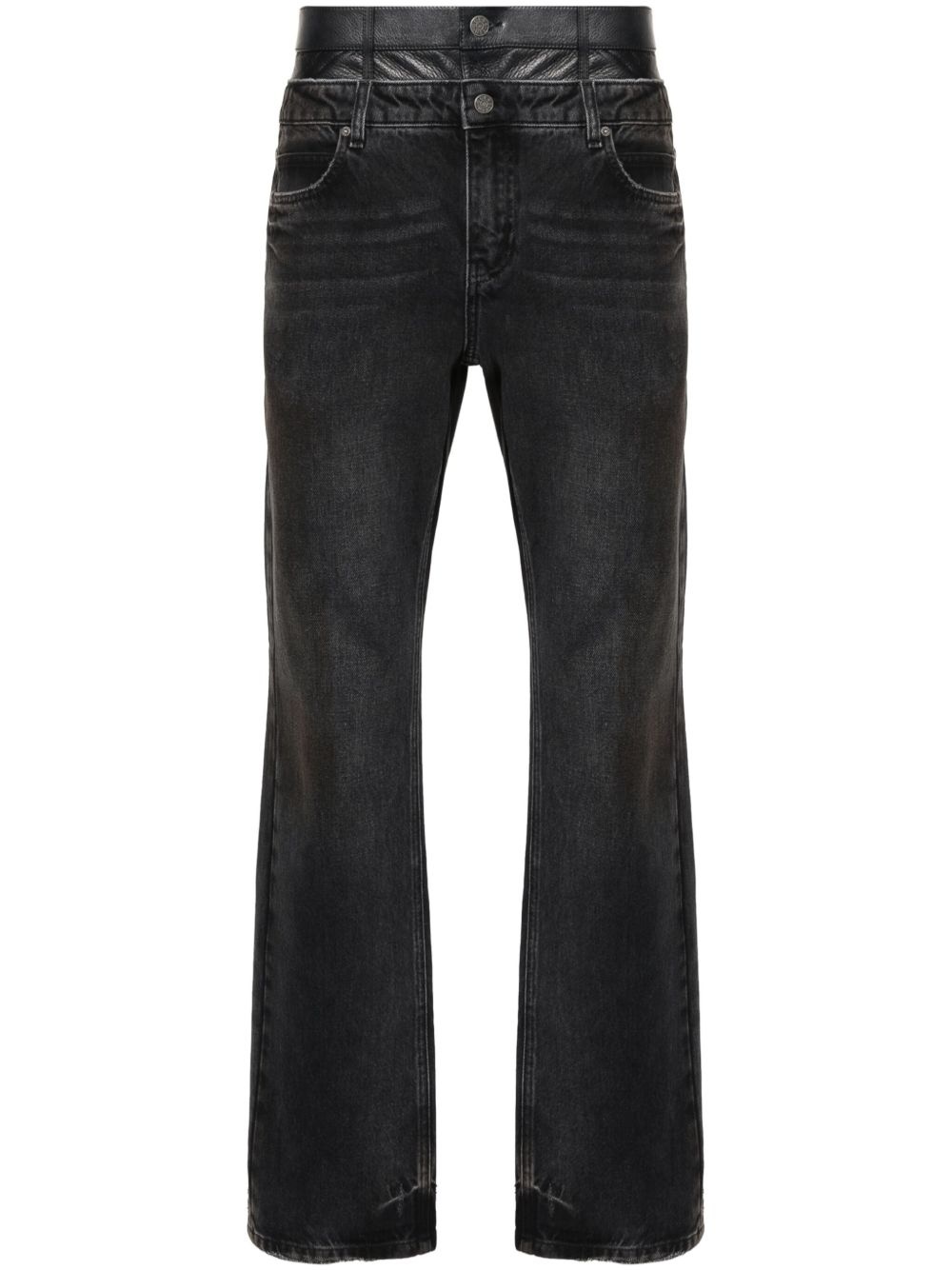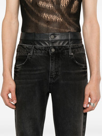 high-rise straight-leg jeans Highlights - Dark grey - Denim - Leather panel - High-waisted - Belt loops - Classic five pockets - Whiskering effect - Straight leg - Logo patch to the rear - Concealed fly and button fastening Imported Composition Calf Leather 100%, Cotton 100% SIZE & FIT Model measurements Height 6 ft 2 in(1.87 m) Bust/Chest 36.41 in(92.5 cm) Hips 35.43 in(90 cm) Waist 29.52 in(75 cm) FittingInformation Designed with a straight leg, these jeans allow for an unrestricted and comfortable fit over the leg Sturdy and hard-wearing, this denim piece offers no stretch This piece fits true to size – take your usual size Washing instructions Specialist Cleaning