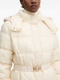 hooded belted coat Highlights - Beige - Quilted design - Hooded - Belt - Button embellishment - Front pockets Imported Composition Fabric 100% Washing instructions Read Manufacturer Guidelines