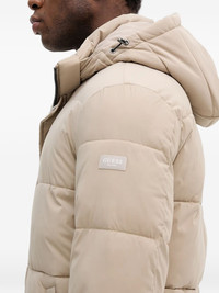hooded puffer jacket Highlights - Beige - Drawstring hood - Zip fastening - Ribbed cuffs Imported Composition Outer: Polyester 92%, Elastane 8% Lining: Polyester 100% Washing instructions Read Manufacturer Guidelines