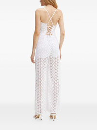 lace-embellished jumpsuit Highlights - White - Lace design - Spaghetti straps - Square neck - Lace-up back - Openwork design Imported Composition Fabric 100% Washing instructions Read Manufacturer Guidelines