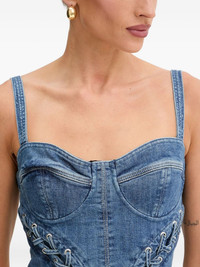 lace-up denim top Highlights - Blue - Denim - Sweetheart neckline - Lace-up detail - Sleeveless Imported Composition Cotton 99%, Spandex/Elastane 1% Washing instructions Read Manufacturer Guidelines