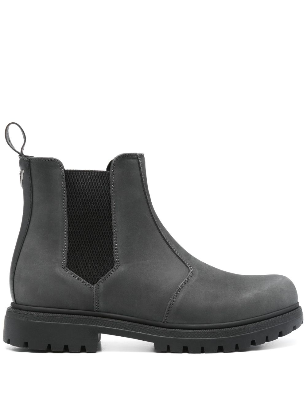 leather ankle boots Highlights - Anthracite grey/black - Leather - Ankle-length - Logo plaque to the rear - Logo pull-tab at the heel - Elasticated side panels - Round toe - Branded insole - Rubber outsole Imported Composition Outer: Leather 100%, Fabric 100% Lining: Polyurethane 100% Sole: Rubber 100% SIZE & FIT Measurement CIRCUMFERENCE 11.81 in(30 cm) HEEL 1.37 in(3.5 cm) HEIGHT 5.9 in(15 cm) PLATFORM 0.78 in(2 cm)