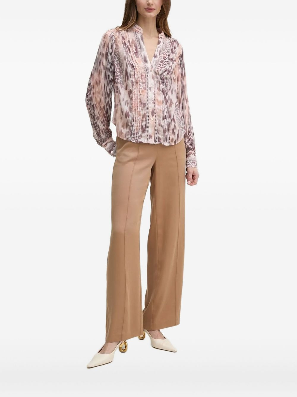 leopard-print shirt Highlights - Pink/brown - Front button fastening - Leopard print - Long sleeves - Buttoned cuffs Imported Composition Polyester 100% Washing instructions Read Manufacturer Guidelines