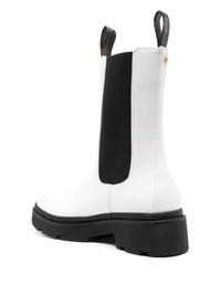 logo-plaque Chelsea leather boots Highlights - White - Calf leather - Smooth grain - Almond toe - Logo pull-tab - Elasticated panelling - Gold-tone logo plaque - Branded insole - Ridged rubber sole - Slip-on style Imported Composition Other fibres 100% SIZE & FIT Measurement HEEL 1.88 in(4.8 cm) HEIGHT 7.87 in(20 cm) Sole height 1.18 in(3 cm)