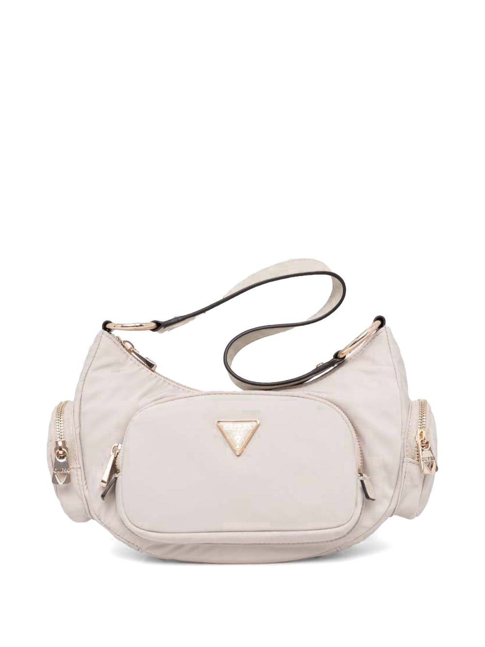 logo-plaque shoulder bag Highlights - Light beige - Top zip fastening - Single top handle - Main compartment - Front zip fastening pockets Imported Composition Outer: Polyester 100% SIZE & FIT Measurement DEPTH 3.14 in(8 cm) HEIGHT 7.48 in(19 cm) WIDTH 10.23 in(26 cm)