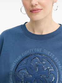 logo-print sweatshirt Highlights - Blue - Embellished graphic - Round neck - Long sleeves - Ribbed hem - Ribbed cuffs Imported Composition Cotton 100% Washing instructions Read Manufacturer Guidelines